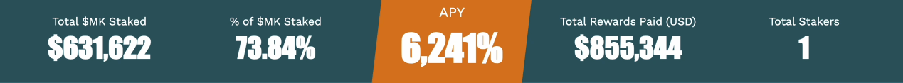 INFO - Staking has ended on the 31st of October 2024. You can still claim any staked tokens and rewards. The dashboard is now exclusively used for $MK for the game.